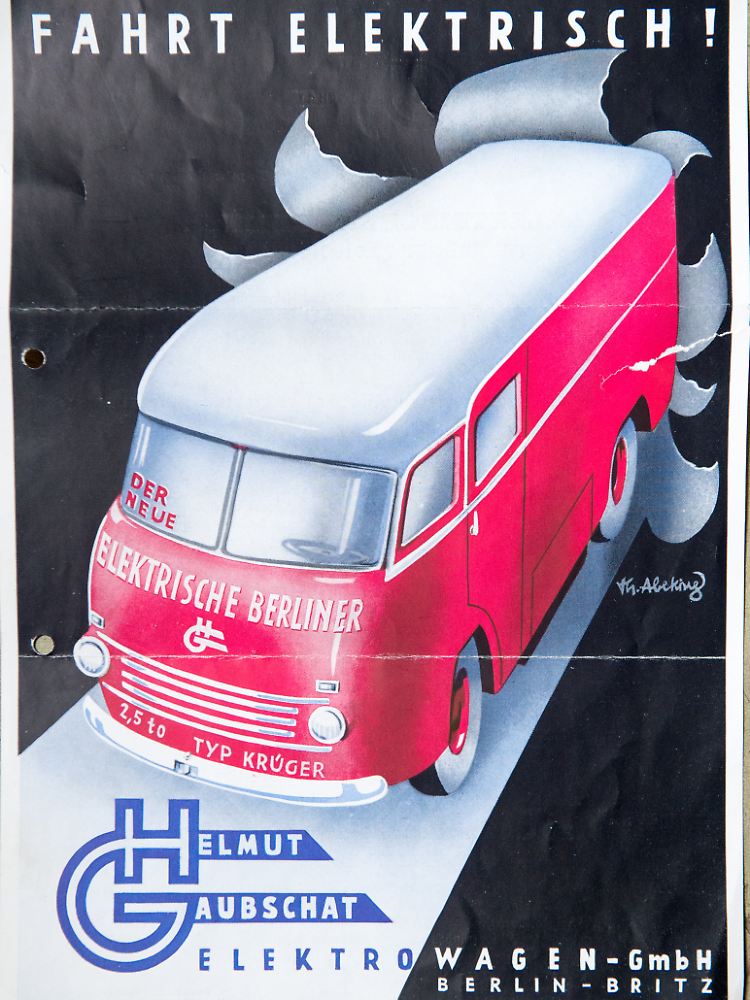 Eine historische Anzeige für einen Gaubschat Elektro-Lastwagen 2,5 TO Typ Krüger.