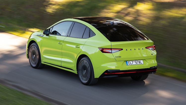 Viel Power, gestrafftes Fahrwerk und ein dynamischer Karosserie-Zuschnitt: Das Skoda Enyaq Coupé RS iV präsentiert sich als die sportliche Alternative zu einem klassisch-kastenförmigen Schwestermodell. Die wahren Vorzüge des auf Wunsch mambagrün lackierten Elektroautos liegen aber woanders als in schnellen Kurven.
