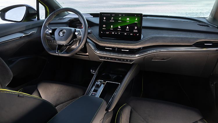 Ein großes Auto mit großer Reichweite gibt es nicht zum kleinen Preis: Mindestens 61.550 Euro muss ein Käufer investieren, gut 10.000 Euro mehr als für den Standard-Enyaq in der Allradausführung mit gleicher Batterie und etwas weniger Leistung. Selbst der Technik-Zwilling VW ID.5 GTX ist rund 5000 Euro günstiger. Ausgeglichen wird das mit einer umfangreichen Ausstattung. Zu dieser zählen unter anderem Sportsitze, 20-Zoll-Räder (21 Zoll gegen Aufpreis), Dreizonen-Klimaanlage, Rückfahrkamera und ein Panoramaglasdach. Optional gibt es eine Wärmepumpe für reichweitenschonendes Heizen sowie diverse Technik-Pakete, in denen sich auch adaptive Dämpfer finden, die die Fahrwerkshärte etwas abmildern.