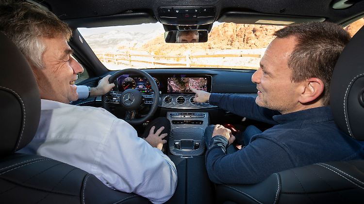 Der Autor in der neuen E-Klasse im Gespräch mit dem Baureihenleiter Michael Kelz.