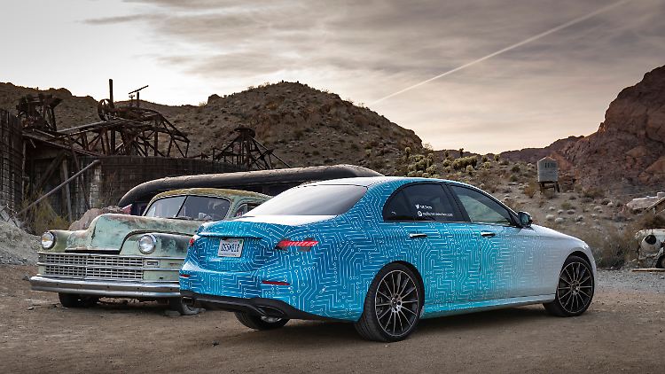 Apropos fahren: Mit dem M 254 hält ein völlig neuer Vierzylinder Einzug in die E-Klasse. "Und wenn wir hier von neu reden", so Kelz, "dann meinen wir das auch so. Wir haben an dem Motor wirklich jede Schraube angefasst." Und das ist selbst bei der Mitfahrt im Red Rock Canyon in Nevada zu spüren. Mit einem 48-Volt-Bordnetz und einer Nennleistung von 272 PS, die im Boost um weitere 20 PS steigt, schiebt der Wagen forsch an. "Die genauen technischen Daten kann ich Ihnen noch nicht nennen", erklärt Kelz, während er das Gaspedal Richtung Bodenblech presst, "weil wir noch in der Homologation sind". "Fakt ist, dass es hier noch ein wenig ruckelt", so Kelz weiter, "aber das stellen wir noch ab".
