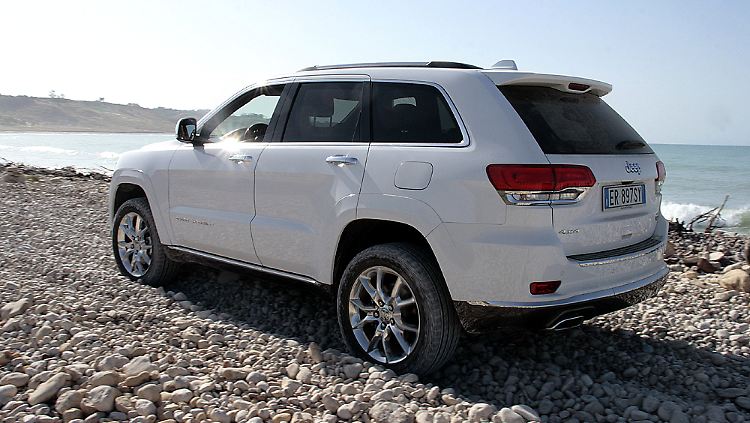 Die Front erfuhr eine nachhaltige Überarbeitung. Die charakteristischen sieben Schlitze, die der Grill eines jeden Jeeps ziert, sind breiter und eckiger geworden und stellen so die optische Verwandtschaft zum kleineren Schwestermodell Compass her. In einigen Ausführungen sind die Lamellenöffnungen mit einem hellen Gitter aus sechseckigen Waben hinterlegt, was die Schlitze wie eine durchgehende Fläche aussehen lässt. Die Scheinwerfergläser sind noch eine spur schmaler und tragen jetzt eine LED-Grafik mit hohem Wiedererkennungswert als Tagfahrlicht. Die Heckschürze dient zur Unterscheidung verschiedener Ausstattungslinien. So sind etwa runde Auspuffendrohre ebenso vorgesehen wie trapezförmige, verchromte Blenden. Zwar haben die deutschen Kunden theoretisch die Wahl zwischen vier Motorvarianten, in der Praxis dürfte es in rund 90 Prozent der Fälle aber auf den Dreiliter-Dieselmotor hinauslaufen. So war es jedenfalls bisher. Nur ein paar V8-Fans werden sich für den 5,7-Liter- oder den 6,4-Liter-HEMI-Motor entscheiden, die 352 bzw. 468 PS leisten.