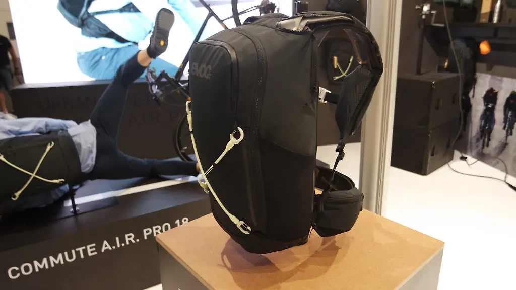 Der Sportrucksack- und Protektoren Hersteller Evoc bringt im Herbst mit dem Commute Air Pro 18 den weltweit ersten Airbag-Rucksack für Radfahrer auf den Markt. Die kompakte Transportasche enthält eine Sturzerkennungs-Sensorik und bietet zudem praktischem Stauraum mit einem Volumen von 22 Litern.