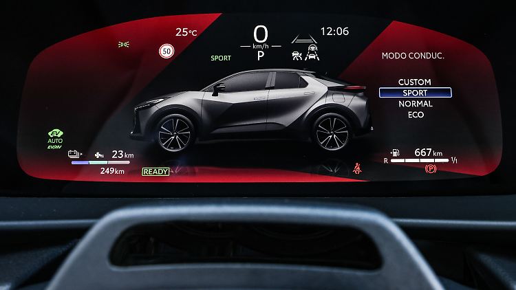 Der C-HR soll so umweltfreundlich wie möglich sein, drum hat Toyota am Gewicht gefeilt - etwa mit hochfestem Stahl und einer Infrarot-reduzierenden Low-E-Beschichtung fürs Glasdach. Außerdem kommen etwa an Sitzen, Lenkrad und Verkleidungsteilen doppelt so viele Recycling-Materialien zum Einsatz wie beim Vorgänger. Die Reihe eins ist deutlich fahrerorientiert, mit einer auffallenden "Trennwand" zur Beifahrerseite. Toyota setzt auf einen Mix aus digitaler Bedienung über den je nach Ausstattungsversion 8 oder 12,3 Zoll großen Touchscreen und aus analogen Tasten etwa für die Klimatisierung. Das Zentralinstrument ist grundsätzlich digital und ebenfalls 12,3 Zoll groß, es lässt sich wie heute üblich vielfältig an die Wünsche des Menschen am Steuer anpassen. Ein Head-up-Display wird ebenfalls angeboten.
