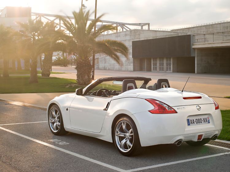 Wo die Konkurrenz auf Vierzylinder setzt, fährt der Nissan 370Z Roadster mit sechs Zylindern vor. In der Klasse bis 45.000 Euro ist er so wohl der einzige, der es bei den Fahrleistungen mit dem deutlich teureren Porsche Boxster aufnehmen kann. Der offene Zweisitzer mit klassischem Stoffverdeck kostet ab 41.450 Euro und schöpft aus 3,7 Litern Hubraum ohne Turbo oder Kompressor 241 kW/328 PS. Den sportlichen Anspruch unterstreicht auch das manuelle Sechsganggetriebe, das mit einem netten Gimmick aufwartet. Beim Herunterschalten gibt die Elektronik automatisch Zwischengas – klingt toll und sorgt für den perfekten Drehzahlanschluss.