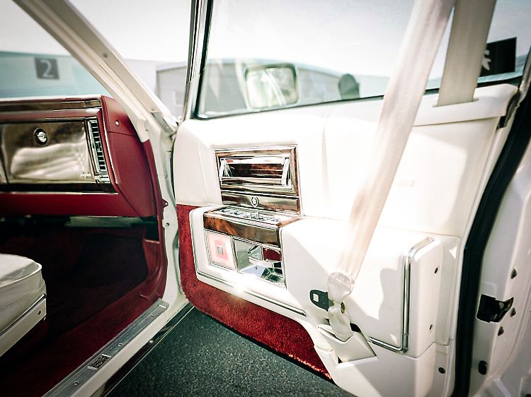 Und wer hier als Kunde wählte, bekam so ziemlich das Luxuriöseste, was die Cadillac-Palette hergab über viele Jahre. Dabei trug das eher schlichte Modell mit den klassischen Breitbandscheinwerfern wenig auf. Um über den Typen zu informieren, macht einzig ein kleiner Schriftzug am hinteren Kotflügel aufmerksam, der auf dem Supermarktparkplatz immer im wahrsten Sinne des Wortes herausragt. Denn mit 5,61 Metern Länge kann es der Ami selbst mit den sündhaft teuren Rolls-Royce-Modellen aufnehmen, obwohl er selbst zeitgenössisch viel günstiger war. Und spätestens wenn man in den weißen Lederpolstern im Stil einer alten Klubgarnitur versinkt, weiß man, dass auch das Interieur den Luxus verströmt, den der rollende Riese verspricht. Verschwenderisches Wurzelholz kommt ebenso zum Einsatz.