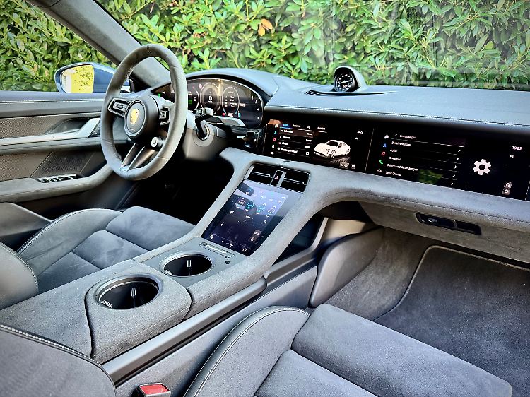 Viel Mikrofaser innen verleiht dem stärksten Porsche-Taycan-Modell einen sportlichen Touch.