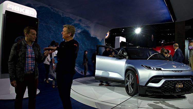 Henrik Fisker (rechts) im Gespräch über den Fisker Ocean auf der Los Angeles Auto Show.