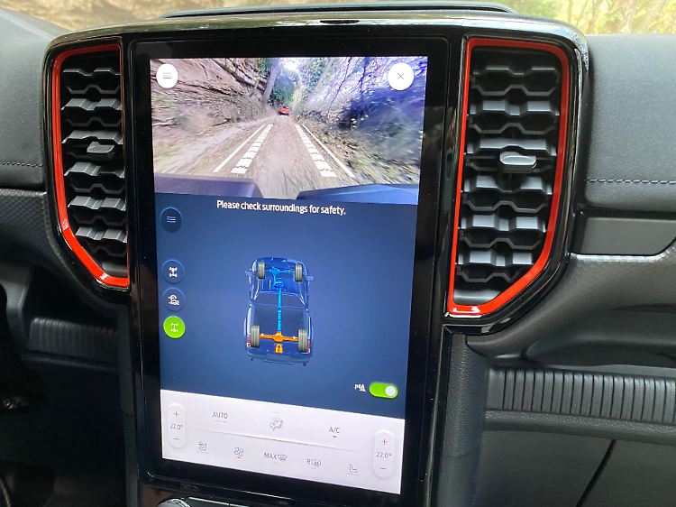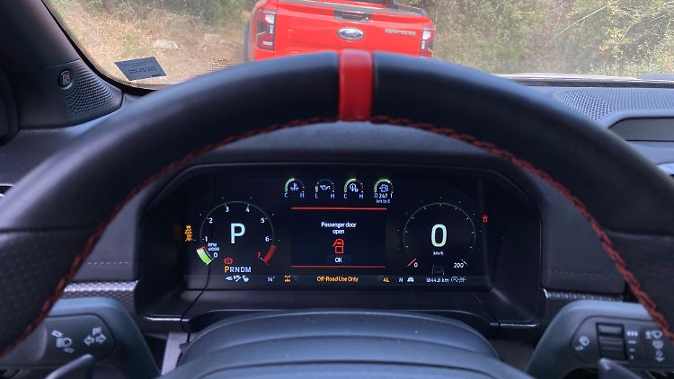 Bei all der Konzentration, mit der man solchen Extrembedingungen begegnen sollte, geht beinahe unter, dass der Ranger ja in der Zwischenzeit richtig modern geworden ist. Ein riesiger Touchscreen lädt zum Bedienen, aber auch zum Spielen ein. Oder einfach nur zum Gucken. Dass Ford die mechanischen Anzeigen längst ausgemistet hat, ist ja aus den anderen jungen Modellen hinlänglich bekannt. Die induktive Ladefläche für das Smartphone sei erwähnt, sie ist praktisch.