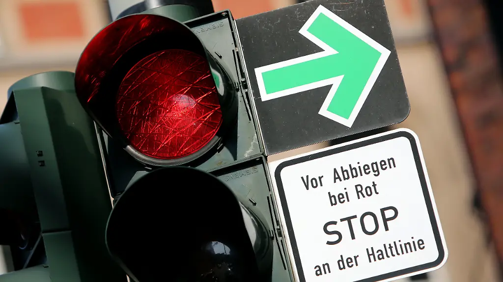 Bei einem Rechtsabbiegepfeil an Ampeln darf man auch bei Rotlicht abbiegen. Allerdings nur, wenn auf der kreuzenden Straße niemand quert. Um die Verkehrssituation besser einschätzen zu können, muss man bei roter Ampel mit einem grünen Abbiegepfeil-Schild vor dem Abbiegen wie bei einem Stoppschild halten, um zunächst auf querenden Verkehr zu achten. Ist alles frei, darf man abbiegen, obwohl die Ampel rot ist.