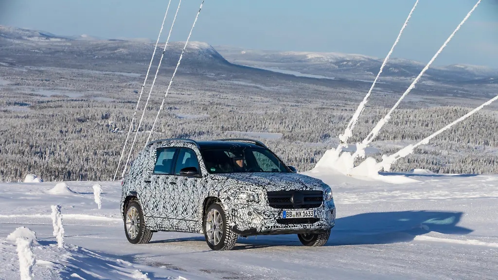 Die auszuprobieren gibt es aber keine Zeit, denn Eck gibt auf der geschlossenen Schneedecke mächtig Gas. Wedelt mit dem GLB leicht durch die Kurven, wobei der Motor unter der gedämmten Motorhaube nur leise brummt. Vom Beifahrersitz aus spürt man die starken Karosseriebewegungen, das leichte Aufschaukeln des Fahrwerks. Hierbei setzten die Ingenieure nämlich lediglich auf Stahlfedern, das komfortable Luftfahrwerk bietet Mercedes erst eine Fahrzeugklasse höher an. "Die Herausforderung in den vergangenen vier Jahren war es, auf der begrenzten Fläche einen maximal großen und variablen Innenraum zu schaffen und dennoch beim Fahrverhalten keine Kompromisse zu machen", sagt Eck. Wie sich der GLB wirklich fährt, wird in Bälde auf diesen Seiten lesen zu lesen sein.
