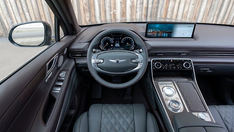 Vorne verzückt der GV80 den Fahrer bisweilen sogar auf verblüffende Art. Da wäre das digitale Cockpit, das klassische Rundinstrumente mit einem schicken 3D-Effekt zeigt. Um die Dreidimensionalität zu erleben, muss der Fahrer keine spezielle Brille tragen. Stattdessen überwachen Kameras permanent, wo er seine Augen hat, um ihm so im Display eine räumliche Tiefe vorzugaukeln, welche die Instrumente wie fein gearbeitete Chronografen erscheinen lässt. Der extrabreite 14,5-Zoll-Touchscreen des Infotainmentsystems, ein Head-up-Display im XL-Format sowie ein kleineres Display für die Klimatechnik runden den Digital-Exzess ab.