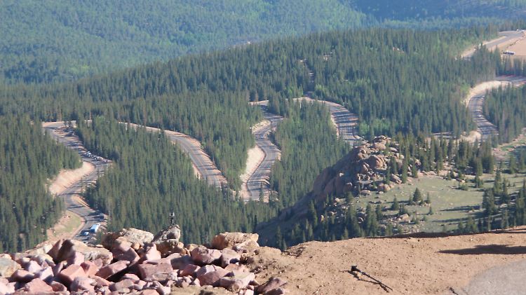 Normalerweise fährt man hier kaum mehr als Schritttempo und braucht fast eine Stunde. Doch einmal im Jahr wird der Weg auf Amerikas Ausflugsberg Nummer eins zur Rennstrecke und die Fahrt in den Himmel zum Höllenritt. Dann startet der Hill Climb am Pikes Peak und Zehntausende feiern "Himmelfahrt" mal ganz anders.