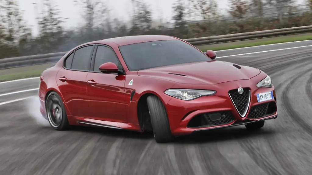 Auf öffentlichen Straßen ist das natürlich nicht angeraten, dort sollte die Giulia mit Bedacht, aber nicht unbedingt unterhalb von 180 PS bewegt werden. Der zugkräftige Diesel passt gut zu dem knapp 1500 Kilogramm schweren Fahrzeug und auch die Verarbeitungsqualität scheint die traurigen Jahre hinter sich gelassen zu haben. 480 Liter Kofferraum öffnen sich über einer 68 Zentimeter hohen Ladekante. In der Basisausstattung liefert Alfa Romeo Alufelgen, Fahrdynamik-Regelung, Licht- und Regensensor, Klimaautomatik, Start-Stopp-System, Spurhalte-Assistent und Kollisionswarner mit.