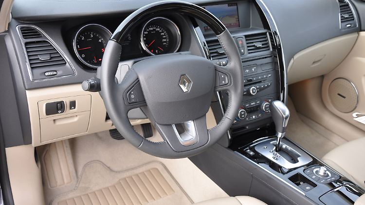 Mit einem Durchschnittsverbrauch von 6,5 Litern (CO2-Ausstoß 170 g/km) auf 100 Kilometern kommt man zwar bei zügiger Fahrweise nicht hin, dennoch hält sich der Konsum im Rahmen. Als Topmotorisierung dient der 3,0-Liter-V6-Diesel mit 177 kW/241 PS, den es ebenfalls nur mit der Automatik gibt. Ein Motor, der zu Karosserie besser passt, da er souverän und unauffällig arbeitet, aber gleichzeitig genügend Schub für einen kurzen Zwischenspurt bereithält: Der Spurt auf die 100-km/h-Grenze ist in 7,6 Sekunden erledigt und der Vortrieb endet erst bei 234 km/h. Dabei soll das Triebwerk 7,2 Liter auf 100 Kilometer verbrauchen, was einen CO2-Ausstoß von 188 g/km entspricht. Preise für die beiden stärkeren Motoren hat Renault noch nicht bekannt geben. Ebenso fehlen Assistenzsysteme wie Abstandswarner, Spurhalteassistent oder Tote-Winkel-Erkennung. Sicherheitsfeatures, wie es sie bei den meisten Mitbewerbern längst gibt.
