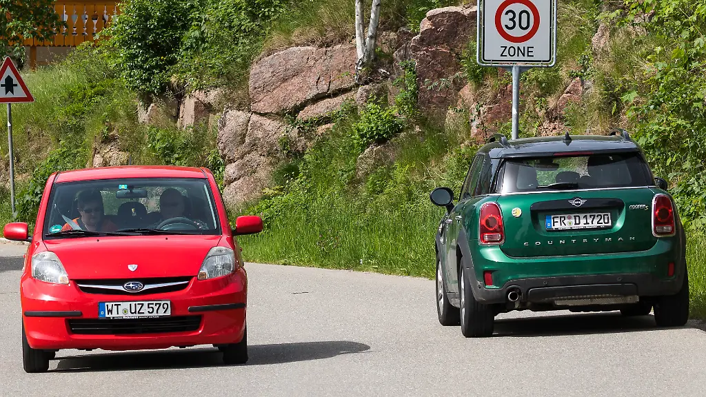 Blau und Rot bei den bunten Autos vorn, Grün kommt