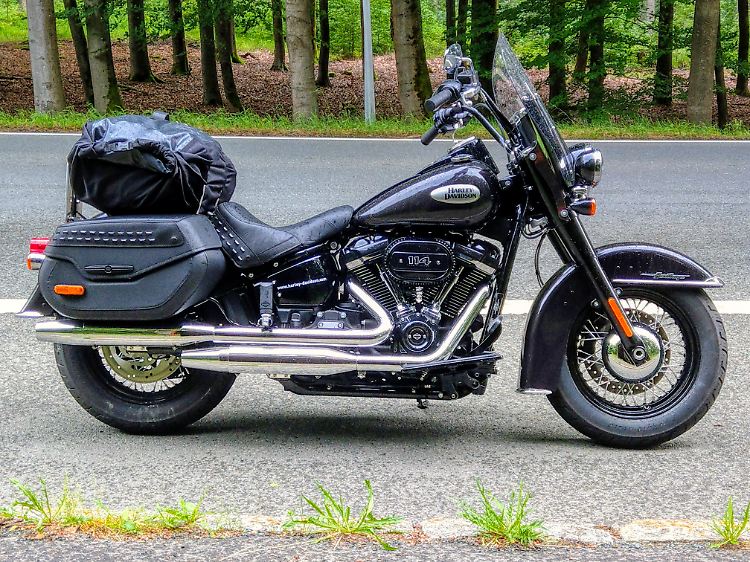 Nicht weniger als elf Modelle listet Harley-Davidson für seine Tourer auf; rechnet man die unterschiedlichen Triebwerke hinzu, stehen sogar 13 Versionen zur Wahl. Wir haben uns im Test für das preisgünstigste Fahrzeug entschieden, die ab 22.595 Euro erhältliche Heritage Classic, wählten allerdings die stärkere der beiden möglichen Motorisierungen, also den Motortyp Milwaukee-Eight 114. Sein V2 realisiert aus stolzen 1868 Kubikzentimetern Hubraum immerhin 95 PS. Der Preis für die Heritage klettert dann freilich auf 23.995 Euro.