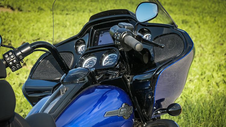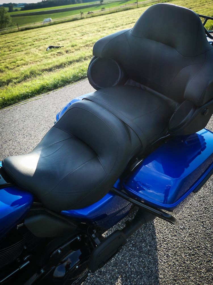 Hat man sich als langjähriger Fahrensmann im Laufe einiger hundert Kilometer auf die Harley eingeschossen, kann man mit ihr auf trockenen Straßen erstaunlich zügig unterwegs sein. Freilich ist die mögliche Schräglage begrenzt, aber zum Glück setzen nicht gleich harte Teile auf, wenn man es als Fahrer mal zu weit treibt. Vom Charakter her ist die Road Glide aber kein Bike, mit dem man es als Fahrer "wissen will"; vielmehr lädt es zum harmonischen Cruisen ein. Dieses gerne sogar viele Stunden am Stück. Auch lange Autobahn-Abschnitte lassen sich - auf Wunsch natürlich musikunterstützt - entspannt absolvieren. Sämtliche aktuell auf dem Markt befindlichen Assistenzsysteme sind übrigens im Preis von rund 35.000 Euro serienmäßig enthalten.