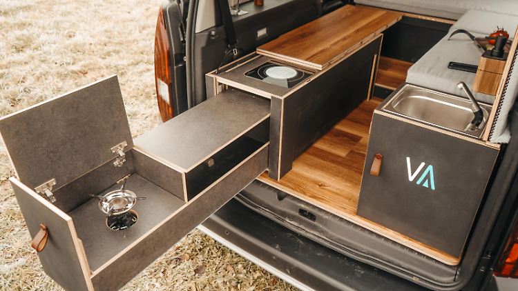 Die beiden Längsblöcke hinten werden zur ausziehbaren Outdoor-Küche mit Induktionskochfeld und portablem Gaskocher sowie gegenüberliegender Spüle. Wenn die linke Box dank Höhenverstellung zum Tisch umgebaut wird, verwandelt sich das Ganze in ein Wohn-Esszimmer mit Ecksitzbank. Und mit ein wenig Polster-Origami entsteht daraus ein Doppelbett für die Nachtruhe. Der Basispreis beträgt 29.000 Euro. Mit dem stärkeren 131-PS-Diesel, Elektro-, Komfort-, Style- und Assistenten-Paketen sowie Markise und zwei zusätzlichen Sitzen für eine Siebener-Konfiguration lässt sich der Preis aber noch um rund 12.000 Euro in die Höhe treiben.