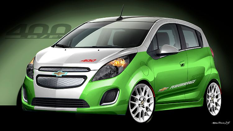 Beim Thema Tuning stecken die Autohersteller – vor allem die amerikanischen – in der Klemme. Einerseits wollen sie stärker als bislang vom Geschäft mit der Auto-Veredelung profitieren, andererseits dürfen sie ihr mühsam aufgebautes Öko-Image nicht zerstören. Auf der Tuningmesse SEMA in Las Vegas gibt es daher auch ökologisch Unverdächtiges zu sehen. Besonders grün – nicht nur was die Lackfarbe angeht – präsentiert sich Chevrolet. Die GM-Tochter hat für die Show den Kleinstwagen Spark mit einem 140 PS starken E-Motor ausgerüstet. Das Triebwerk wuchtet stolze 610 Newtonmeter auf die Vorderachse des City-Winzlings. Und das zumindest lokal emissionsfrei.