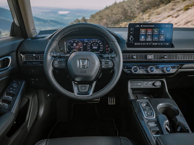 Prunkstück des Kompakten ist aber der Antrieb. In Deutschland ist der Civic aktuell ausschließlich als Hybrid zu haben, der einen 105 kW/143 PS starken Vierzylinderbenziner mit zwei E-Motoreinheiten kombiniert, die mit ihren 135 kW/184 PS in den meisten Fahrsituationen den Antrieb allein übernehmen. Der Verbrennungsmotor läuft derweil mit effizienter Wohlfühldrehzahl und fungiert lediglich als Stromkraftwerk. Direkte Verbindung zu den Rädern nimmt er nur bei starker Beschleunigung oder Konstant-Fahrt mit höherer Geschwindigkeit auf, etwa auf der Autobahn.