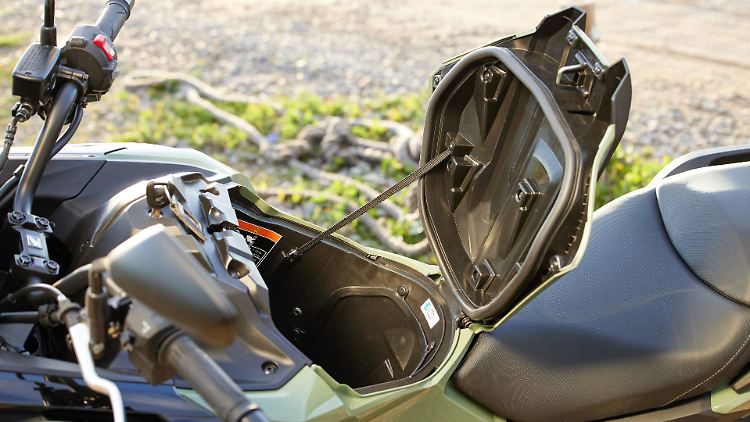 Unter der Klappe, wo sonst der Tank sitzt, bietet die Honda NX750 einen 23 Liter großen Stauraum.