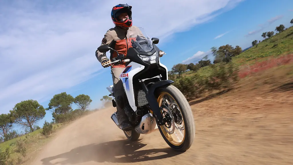 Alle Modifikationen zusammen erhöhen das Gewicht der XL750 Transalp E-Clutch um 6 auf 216 Kilogramm, die sich durch die niedrige Lage jedoch nicht negativ aufs Fahrverhalten auswirken. Exakt dirigierbar, wenngleich nicht überhandlich zieht die Honda zuverlässig ihre Bahn. Jetzt noch stabiler: Der neue, maßgeschneiderte Alu-Unterfahrschutz bewahrt nicht nur den Motor vor groben Schlägen, vielmehr sorgen die zusätzlichen Halterohre für noch mehr Steifigkeit beim Stahlbrückenrahmen. Das erleichtert die Arbeit der USD-Gabel, die feiner ansprechen und damit mehr Feedback ermöglichen soll bei optimierter Hochgeschwindigkeitsstabilität.