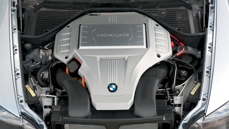 Dabei hat der X6 Active Hybrid einen Nickel-Metallhydrid-Speicher unfallsicher über der hinteren Achse montiert, der sich mit seinen 2,4 Kilowattstunden Kapazität in jedem Fall sehen lassen kann. Doch diese muss sämtliche Stromverbraucher des Fahrzeugs mitversorgen. Über eine Kopplung mit der Klimaanlage wird diese Hochleistungsbatterie flüssig gekühlt.
