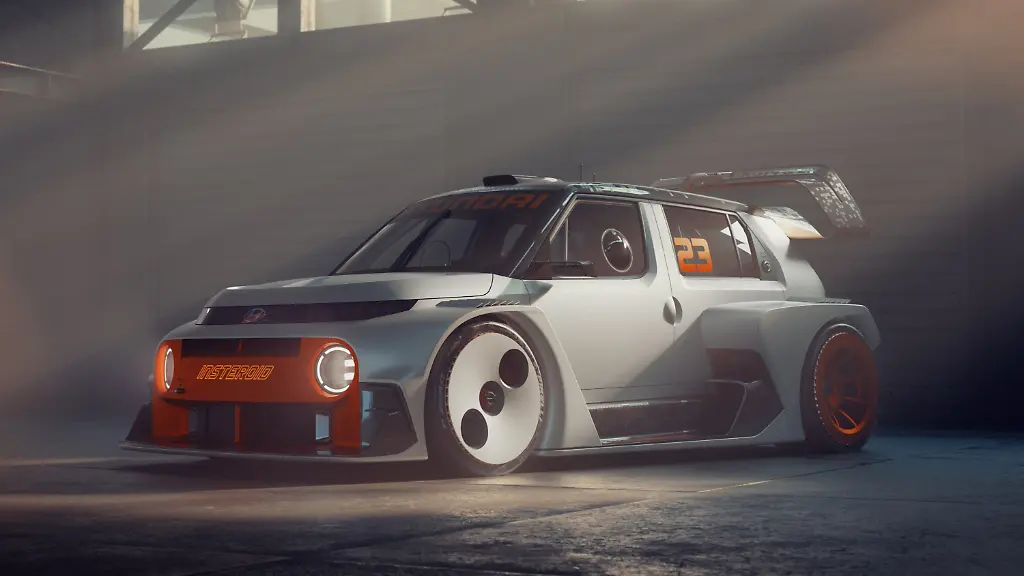 Rein äußerlich hat das Projektteam die Karosserie des 3,83 Meter langen Elektro-Kleinwagens Inster vergrößert und mit Lufteinlässen an den Radkästen, einem Diffusor sowie einem markanten Heckspoiler bestückt. Doch das sind nicht die einzigen Anleihen aus dem Motorsport, mit denen der praktikable Inster komplett umgekrempelt wurde. Der Insteroid ist auf einem Gitterrohrrahmen aufgebaut. Dass da ein Überrollkäfig und entsprechende Sportsitze nicht fehlen dürfen, ist fast schon obligatorisch.