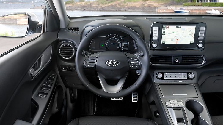 Keine allzu großen Ansprüche darf man dagegen an die Vmax stellen: Maximal läuft der große E-Kona 167 km/h, der kleinere schafft nur 155 Sachen; den 100-km/h-Sprint absolviert er in 9,7 Sekunden. Jenseits des Landstraßentempos kann man aber ohnehin der Stromtankuhr zuschauen, wie sie sich in Richtung Nullpunkt bewegt. Ein bisschen Power zurückgewinnen kann man beim Bremsen: Die Schaltpaddel am Lenkrad wurden umfunktioniert, schließlich hat das per Tasten auf der schwebenden Mittelkonsole bediente Getriebe ohnehin nur einen Gang. Dafür lässt sich mit den Hebelchen die Rekuperationsleistung in mehreren Stufen einstellen, bis hin zur One-Pedal-Funktion: Dann verzögert der Kona beim Loslassen des Gaspedals bis zum Stillstand, und die mechanische Bremse muss nur noch selten eingreifen.
