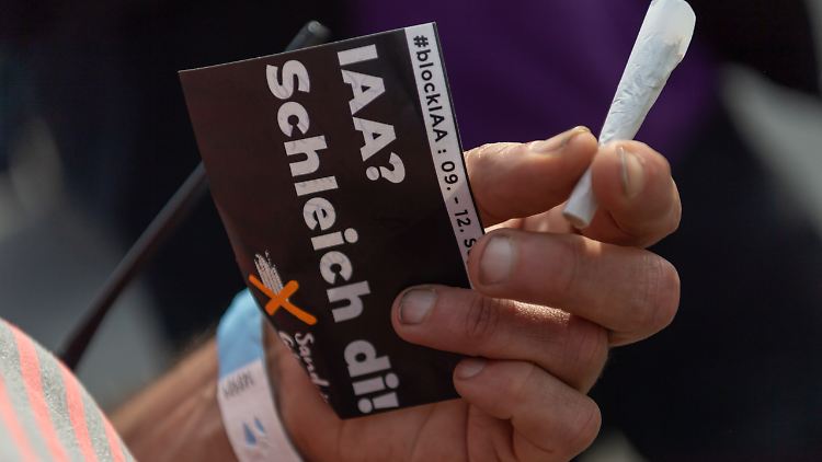 Bayerns Innenminister Joachim Herrmann hat gleich 4500 Polizisten zur Bewachung der IAA abgestellt - um "gewalttätige Proteste" im Keim zu ersticken. Blockaden der Stände zumindest vor allem Freitag und Samstag bereiten den Messemachern schon jetzt Unbehagen. Eine Fahrrad-Sternfahrt am Wochenende mit erwarteten 30.000 Demo-Teilnehmern sehen die Veranstalter dagegen eher gelassen. Schließlich ist ja auch auf dem offiziellen IAA-Plakat des Verbands der Autohersteller VDA ganz vorn ein emissionsloses Zweirad zu sehen. Das Auto bleibt im Hintergrund.