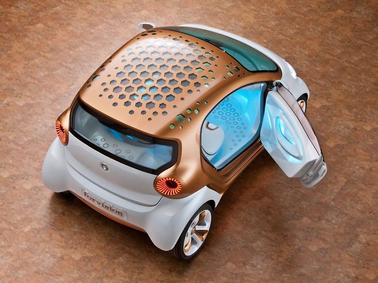 Einzelne Komponenten wie die Kunststoffräder oder die Infrarot-Reflexlacke werden schon in zwei oder drei Jahren in die Serienproduktion eingehen, sagte Smart-Chefin Annette Winkler. Doch viele der Materialien und Technologien im Forvision seien noch Zukunftsmusik, räumt Winkler ein: "Wir wollten zeigen, was einmal möglich sein kann, und müssen jetzt forschen und rechnen, was davon eine Chance hat."