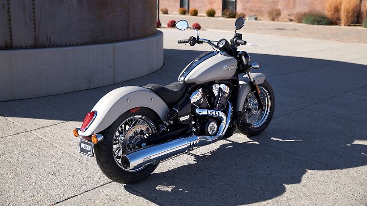 Größe ist relativ - das zeigt die neue Einsteiger-Baureihe der US-Motorradmarke Indian. 1250 Kubikzentimeter Hubraum müssen schon sein in der Basis. Die Scout-Baureihe besteht künftig aus fünf Modellen; ihre Motoren sind nun wassergekühlt. Die neuen Modelle sollen ab Mai ausgeliefert werden.
