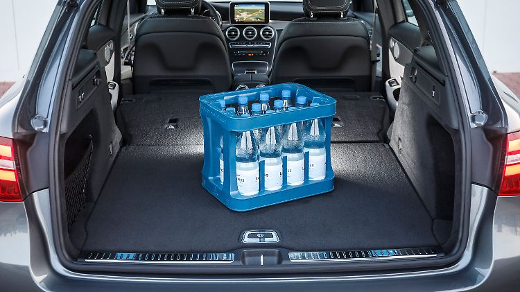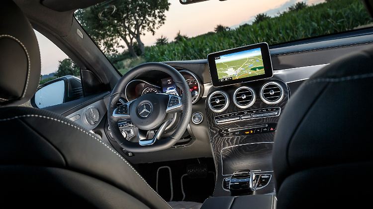 Doch gucken wir zuerst in den Innenraum des GLC. Die Architektur ist bekannt, stammt aus der C-Klasse und passt hervorragend in den neuen Gegner des Audi Q5. Das Cockpit scheint zu schweben, wobei die kühn geformte Mittelkonsole und der frei stehende Bildschirm diesen Eindruck unterstützen. Dazu gibt es eine perfekte Verarbeitung in allen Details. Aber nicht nur, dass das Interieur hier frischer wirkt als beim GLK, auch die viel bemängelten Tücken des Vorgängers wurden konsequent ausgemerzt. So gibt es nunmehr in allen vier Türen Aufnahmeflächen für Flaschen von bis zu einem Liter Fassungsvermögen. Der neue Schwung der Armauflage verhindert, dass der Pilot sich, wie noch im GLK, bei Rangiermanövern den linken Ellbogen stößt und auch die fast ärmlichen 450 Liter Kofferraumvolumen sind auf 550 Liter gewachsen.