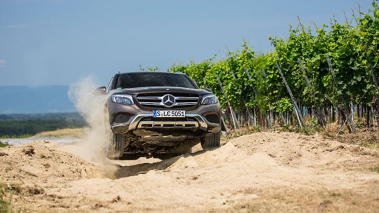 Aber nicht nur die Möglichkeit zum behänden Kurvenlauf und teilautonomen Fahren ist dem GLC mit permanentem Allradantrieb gegeben. Seinem Charakter entsprechend kann man ihn auch durch schweres Geläuf jagen. Natürlich wird das kein Mensch tun, wenn er mindestens 44.500 Euro bezahlt hat. Wenn er aber weitere 590 Euro für das Offroad-Paket draufpackt, dann könnte er es. Das Fahrniveau lässt sich jetzt nämlich über die Luftfederung um 5 Zentimeter auf 22,7 Zentimeter anheben, was einen Klassenrekord darstellt. Im Zusammenwirken mit einer besonders weichen Grundabstimmung können die Räder so länger den Bodenkontakt halten und das Durchsetzungsvermögen im Gelände erheblich steigern. Insofern sind auch Verschränkungsfahrten kein Problem für den GLC.