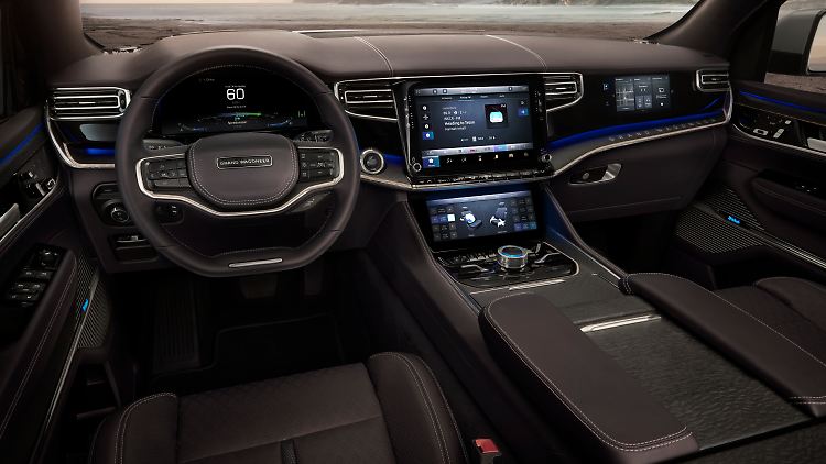 Im Innenraum präsentiert sich der Jeep Grand Wagoneer bis in die letzte Faser digitalisiert.