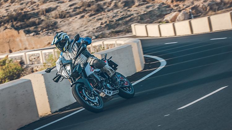 Mehr Spaß machen freilich kleine, möglichst kurvenreiche Strecken, wie es sie auf der Kanareninsel Teneriffa zuhauf gibt. Einlenken, abwinkeln, rausbeschleunigen – alles flutscht ohne Kraftaufwand. Das Fahrwerk mit 19 Zoll-Vorderrad und 17 Zoll-Hinterrad gefällt. Nicht zuletzt dank des mit 172 Kilogramm bescheidenen Leergewichts fällt es leicht, mit der 390 Adventure im Winkelwerk schnell zu sein. Dabei helfen der angenehm breite, gut zur Hand liegende Lenker, die entspannte Sitzposition und die Leichtgängigkeit aller technischen Bauteile.