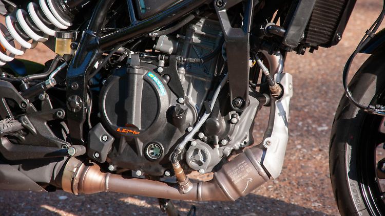 Dabei handelt es sich um den LC4c genannten Einzylinder, der mit neuem Zylinderkopf Gewicht einspart und aus immer noch 125 Kubik die maximal erlaubte Leistung von 15 PS erlöst. Diese transferiert ein überarbeitetes, gleichwohl etwas knarziges Sechsganggetriebe ans Hinterrad, dem für 425 Euro ein Quickshifter auf die Sprünge hilft. Spontan und gut dosierbar setzt der Motor die Vortriebswünsche um, beim Antritt dominiert indes Gleichförmigkeit über Spritzigkeit - mit ein wenig Anlauf stehen echte 105 km/h auf der Uhr.