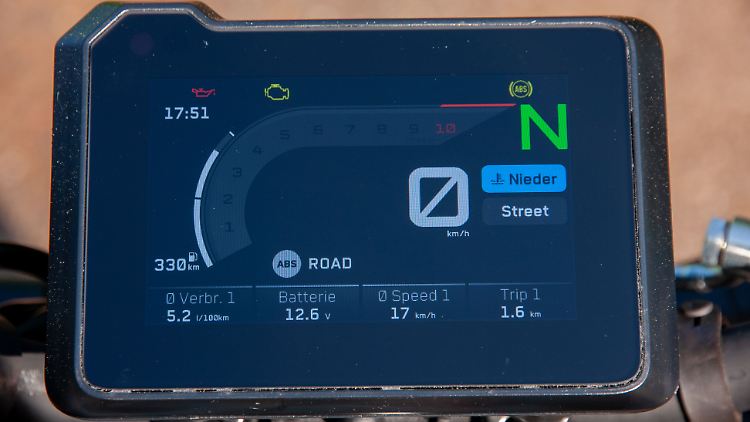 Ebenfalls im Blick liegt ein elektronisches Highlight: Das Fünf-Zoll-TFT-Farbdisplay ist ein Muster an Ables- und - dank neuem Vier-Wege-Menüschalter - Bedienbarkeit. Neben den Motoreinstellungen und umfangreichen Fahrzeuginformationen lässt sich das Layout auf einen Track-Modus mit Laptimer umstellen und das Handy koppeln, womit auch eine Pfeilnavigation möglich wird.