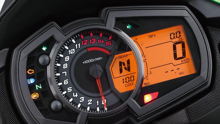Beide erweisen sich als durchaus hilfreiche Handreichungen, denn der aus der Ninja 300 abgeleitete Reihenzweizylinder gibt sich überraschend elastisch: Der Vierventiler mit dem kleinen Hubraum von 296 Kubikzentimeter rollt ohne zu Mucken gemütlich im sechsten Gang durchs Dorf und nimmt nach dem Abbiegen im dritten Gang fast aus dem Stand flüssig und ruckellos wieder Fahrt auf. Hier macht sich die gegenüber der Ninja deutlich kürzere Endübersetzung bezahlt, die einen unkomplizierten Charakter mit leichtester Fahrbarkeit fördert. In der Praxis braucht man die ersten drei Gänge außer zum Anfahren kaum.