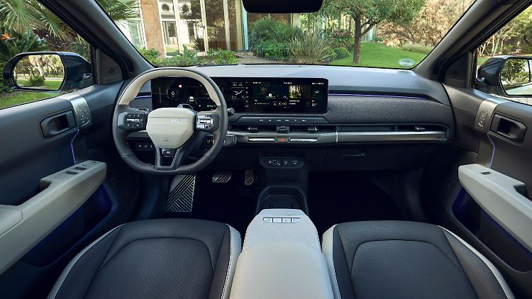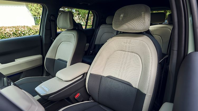 Deren Zentrum in der Mitte des schmal gehaltenen, dreiteiligen Displays ist eine Art Ausziehtisch als Möbelzunge der Mittelkonsole. In voller Größe lässt sich da in Pausen ein Laptop abstellen. Wer mag, kann im EV3 Serien oder Filme streamen und sich in die "Premium-Relaxation-Sitze" kuscheln - im Stand natürlich nur; etwas anderes lassen die strengen EU-Regeln nicht zu.
