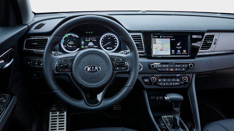 Wie stets versucht Kia im Innenraum mit einer aufgeräumten Atmosphäre zu punkten, die durch hochwertige Materialien Komfort und Solidität vermittelt. Die überwiegend mit Soft-Touch-Oberflächen bezogenen Elemente sind von einer horizontalen Ausrichtung bestimmt, doch das Design verweigert sich der üblichen symmetrischen Anordnung und verteilt zum Beispiel Lüftungsdüsen in gestalterischer Freiheit vor dem Beifahrer. Der Abruf der Funktionen im Infotainment-Display folgt per Touchscreen der erwarteten Logik. Jeder Niro ist ab Werk mit einer Zwei-Zonen-Klimaanlage ausgerüstet, ebenso gehören ein Spurhalte- und ein autonomer Brems-Assistent zum Lieferumfang.