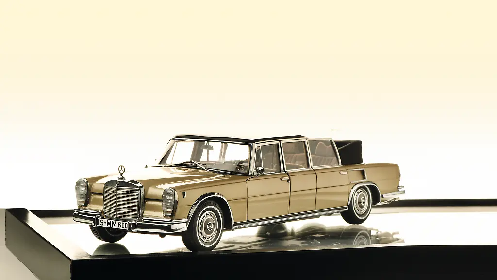 Wer nicht das Geld hat, sich in seine Garage einen Mercedes Landaulet zu stellen, der kann ihn ja auch ins Wohnzimmer fahren. Natürlich nicht in seiner natürlichen Größe, sondern als Modellauto der 60er-Jahre. Aber selbst dafür muss schon recht viel Geld locker gemacht werden.