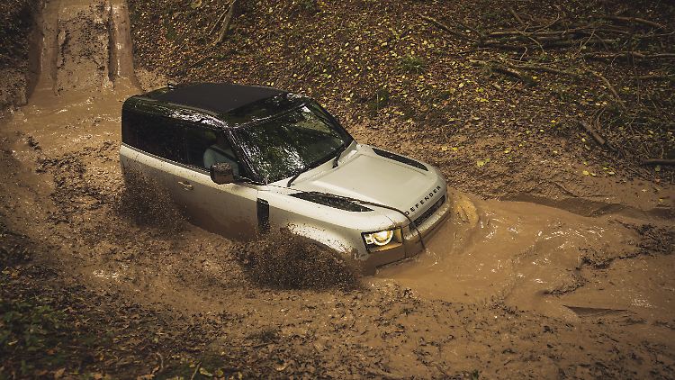 Tagelanger Herbstregen hat die hügeligen Waldwege in eine Matschwüste verwandelt. In einer Talsohle sammelt sich das Wasser zu einem finsteren Tümpel, der die nass-schwarzen Fahrspuren verschluckt. Eine unwirtliche Spielwiese, wie gemacht für einen der besten Geländewagen der Welt. Der Land Rover Defender 90 taucht mit dem Kühler in die gut 80 Zentimeter tiefe Brühe ein, ein Wasserschwall schwappt über die Motorhaube. Dann finden die vier Räder irgendwo im Untergrund ihren Tritt, wühlen sich durch das Hindernis und ziehen den 2,2-Tonner aus der nassen Falle, um ihn dann den nächsten Matschpfad steil bergauf krabbeln zu lassen.