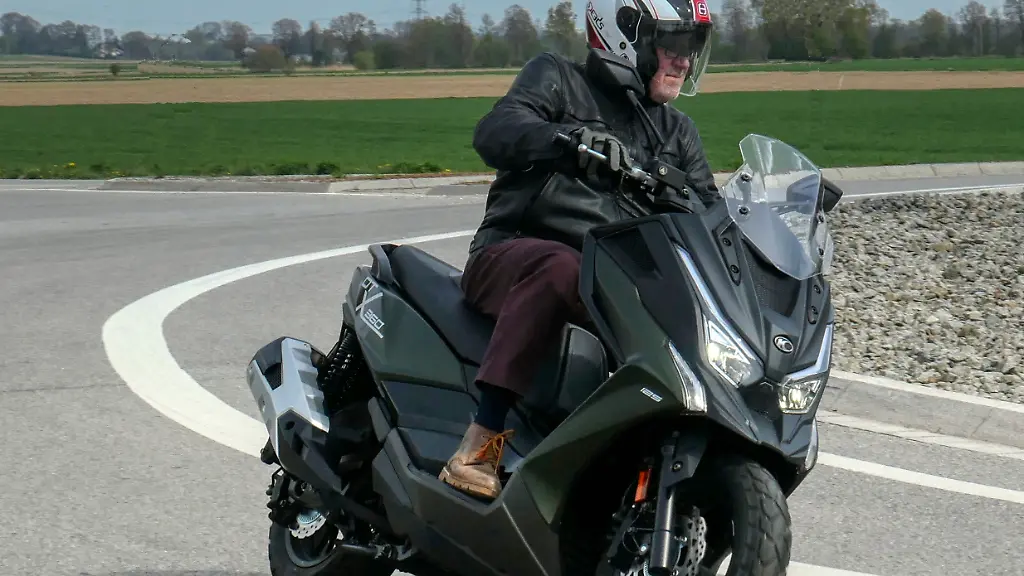 Der DT X360 ist aber immerhin schnell genug, um im normalen Vorort- und Überlandverkehr seine Position behaupten zu können, überholt wird man auch außerorts nur selten. Kurven umrundet der stämmige Scooter dank seiner insgesamt straffen Fahrwerksabstimmung ohne Schaukeln und mit reichlich Schräglagenfreiheit. Die Bremsen - vorne und hinten drehen sich modische Wave-Scheiben - verzögern gut, das ABS regelt schnell und hält den DT X360 in der Spur.