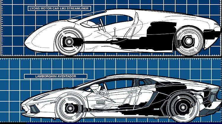Schaut man sich die Zeichnungen des Streamliners an, dann könnte der Wagen auch in einem der nächsten Hollywood-Science-Fiction seinen Einsatz finden. Flach wie eine Flunder behindert nicht eine Kante den vorbeiziehenden Fahrtwind. In diesem Auto scheint alles zu stecken was Designer schon um vier Räder an Windschlüpfrigkeit gezeichnet haben. Angefangen von Jonckheere, der bereits 1930 mit einer ähnlichen Strichführung die Grundlage für das Rolls-Royce Phantom I Aerodynamic Coupé legte, bis hin zu Opels Concept Monza. Allerdings beschleicht einen beim LM2 Streamliner das Gefühl, als hätte der Designer seine Arbeit nicht wirklich abgeschlossen.