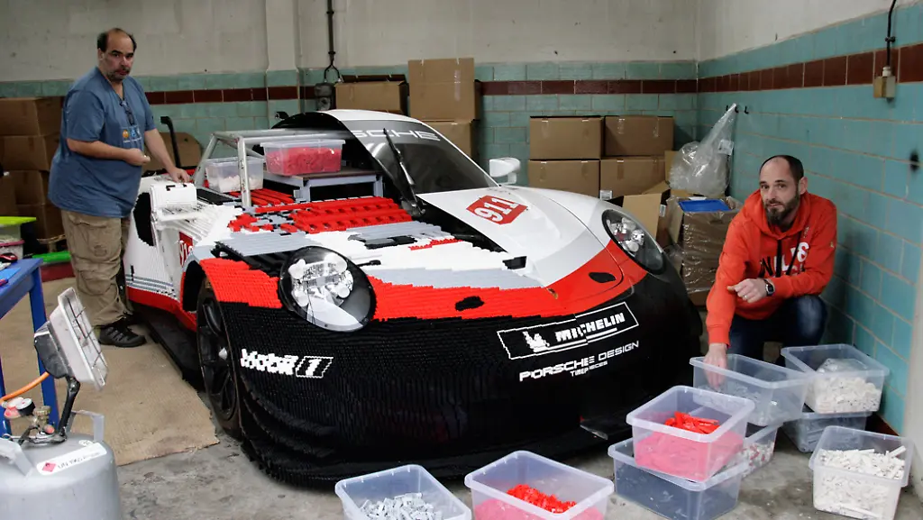 Während in vielen Kinderzimmern die Lego-Baukästen vom weihnachtlichen Gabentisch Jungen und Mädchen anhaltend beschäftigen, sind zwei Familienväter aus Brandenburg froh, erst einmal eine Pause einlegen zu können. Axel Al-Rubaie und René Hoffmeister haben gemeinsam mit ihren Mitarbeitern rund 350.000 der bunten Klötzchen verbaut. Herausgekommen ist ein halber Porsche 911 RSR.
