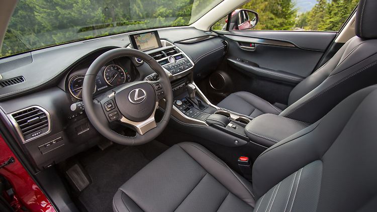 Ja, bei der Materialauswahl haben die Japaner vielleicht sogar des Guten zu viel getan, und ein paar Knöpfe weniger im Cockpit wären auch kein Schaden gewesen. Aber das Ambiente ist vornehm-modern und die Ausstattung auf der Höhe der Zeit: Der Blick geht durch ein großes Head-up-Display, die Hand fällt wie von selbst auf ein neues Touchpad, mit dem man die Maus über den großen Bildschirm dirigiert, vier Kameras zeigen den NX auf Knopfdruck aus fast jeder erdenklichen Perspektive, das Handy lädt kabellos in einer Induktionsschale unter der Mittelarmlehne und ein Heer von Assistenten wacht über die sichere Fahrt.