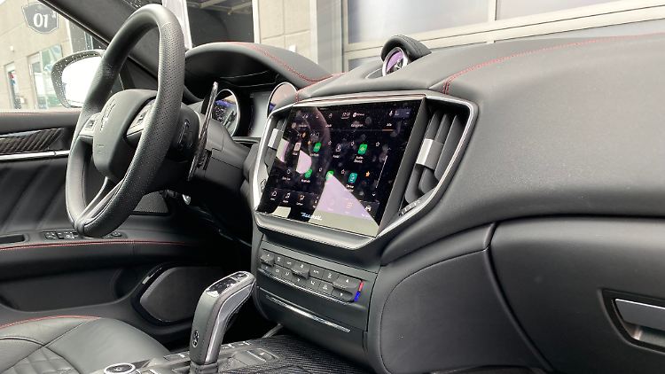 Zum Schluss setze ich mich noch einmal hinter das Steuer des 2023er-Ghibli, nehme den Besitzer des alten Ghibli mit und wir ziehen gemeinsam Resümee. Hier verliert man immerhin nicht so schnell die Übersicht wie im historischen Modell, allein schon wegen der Rückfahrkamera. Und überhaupt, statt feiner mechanischer Anzeigen (der alte Ghibli hat insgesamt acht Skalen) stechen das großzügig eingesetzte Carbondekor sowie der große Touchscreen ins Auge. Wobei auch der neue Ghibli Daten wie Drehzahl und Tempo analog anzeigt.