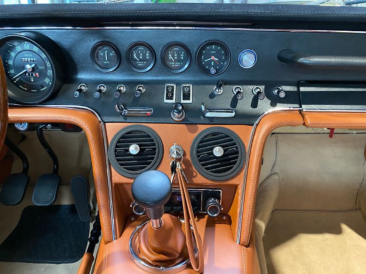 Ich bin ein leicht nervös, möchte endlich selbst ans Steuer. An der nächsten Haltebucht stoppen wir, ich hüpfe flugs hinter das Steuer. Das Getriebeöl scheint immer noch ein bisschen kalt, der erste Gang mag zunächst nur widerwillig einrasten. Aber die Kupplung geht leichtgängiger als vermutet, greift früh. Der Ausnahme-Italiener legt mit dezentem Bass los. Seine vier Weber-Vergaser sind auf den Punkt eingestellt, gleichmäßig dreht der V8 hoch.